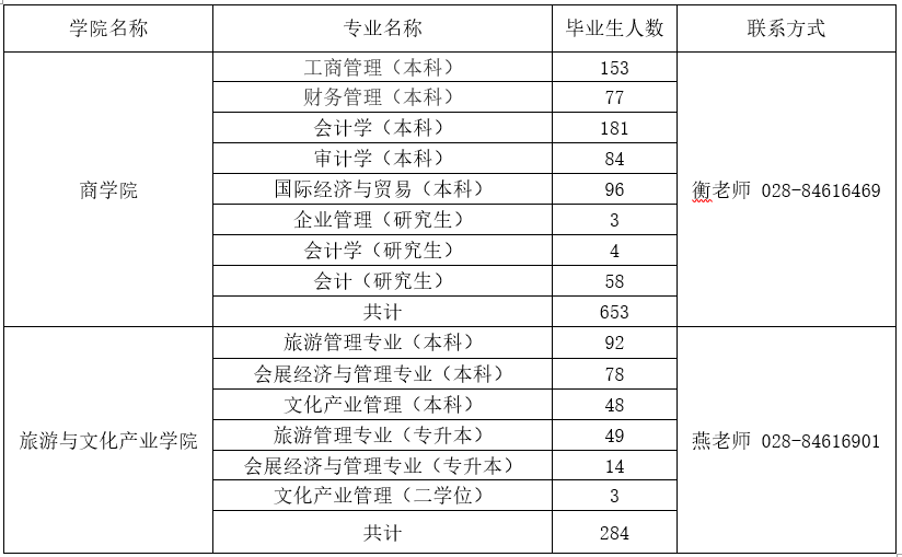 一、商科、文旅类毕业生基本情况及联系方式