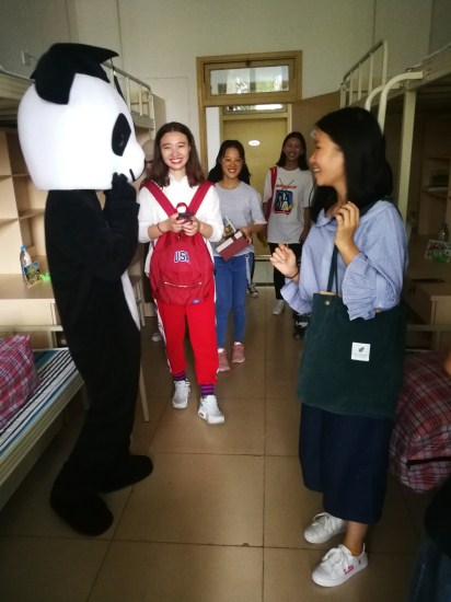 为更好的迎接2018年迎新工作,我院特派熊猫使者与生活部的同学来到每一个新生宿舍,为即将带来的小萌新们送上神秘大礼。在准备过程中,突遇提前来校报到的来自福建的父女。新生父亲表示第一次来到成都、来到成都大学,就感受到了来自学校及电竞竞猜 的热情。