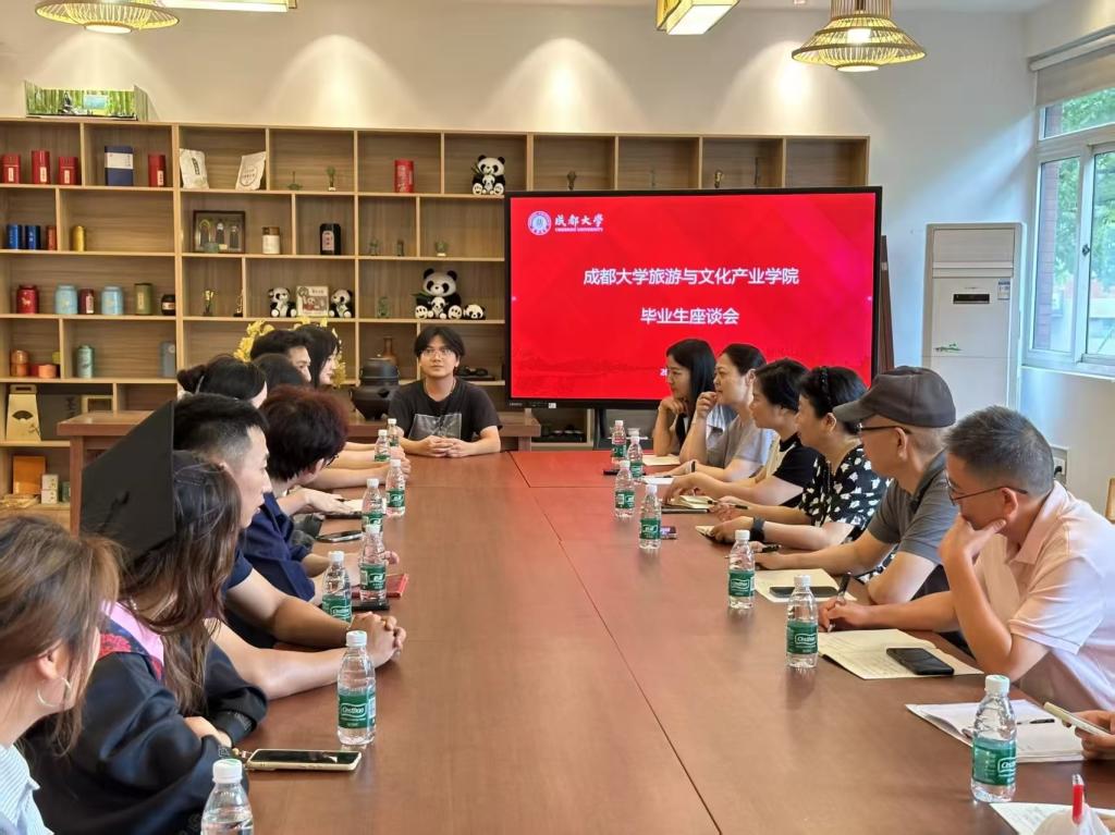 发展的期许和对学弟学妹的关怀。毕业生代表提出问题与困惑时,各位老师认真聆听,为大家破困惑、指方向。当学生谈及自身规划与现实不符的烦恼时,院长耐心回应,强调在旅游与文化产业相关行业里就业,需坚持不懈、积累经验、抓住机遇,提升创意素养,培养“从边缘走向核心”的能力;杨书记也分享心得,鼓励大家接纳社会现实,但仍不能忘关注社会与他人,要拓宽格局,坚持发挥自身价值,坚持终身学习,更要重视身心健康。句句箴言,传递着师长对学生未来之路的指引与牵挂。