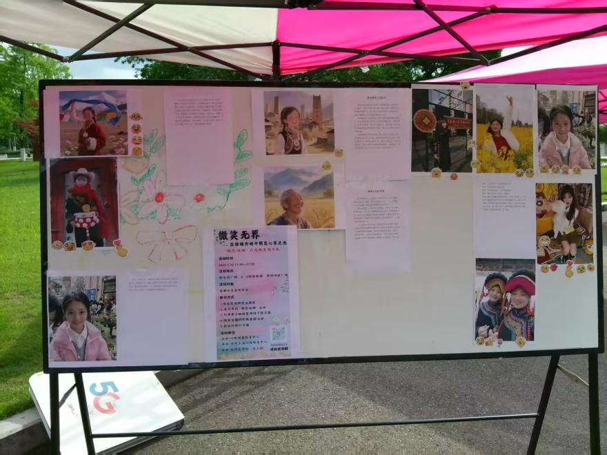 活动分为线上征集与线下展览两大阶段。线上征集于5月6日至16日开展,通过社交媒体平台广泛征集微笑照片;线下展览则在5月28日落地博物馆前广场,涵盖图片展览、互动游戏及民族风情体验等多元内容,活动吸引了超百名同学热情参与。