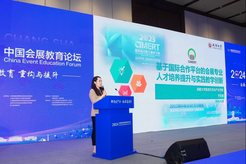 同时,我院教师代表积极参与了同期举办的2024中国会展教育论坛。此次论坛以“会展教育重构与提升”为主题,旨在深入探讨会展教育的未来发展方向,推动会展教育模式的创新与实践。我院文产系副主任孙佳媛老师发表了题为《基于国际合作平台的会展专业人才培养提升与实践教学创新》的主题分享。孙老师从国际合作的视角出发,深入剖析了会展专业人才培养的现状与挑战,并提出了一系列创新性的实践教学策略,分享内容吸引了与会同行的广泛关注,获得了高度评价和热烈反响。
