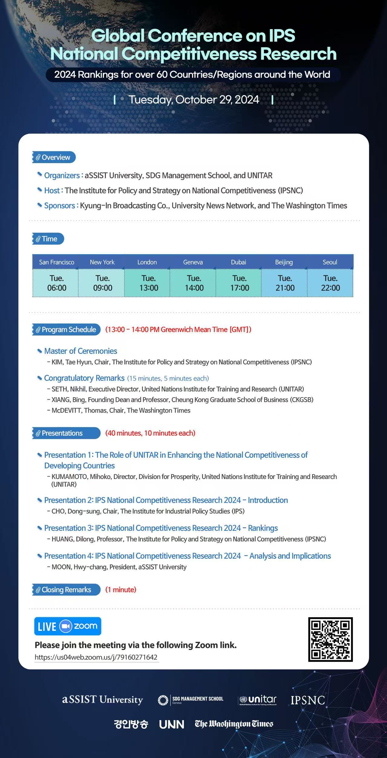 国际学术界备受瞩目的全球IPS国家竞争力研究学术会议于2024年10月29日隆重召开。本次会议由ASSIST大学、SDG管理电竞竞猜