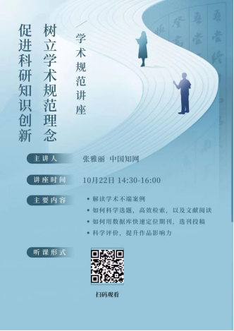 为了进一步提升研究生的学术规范意识和科研创新能力,我院特组织研究生参加了由中国知网主办的“树立学术规范理念,促进科研知识创新”专题讲座。本次讲座于10月22日下午14:30举行。