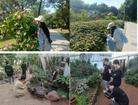 同学们的身影流走在植物园内的每个园区,地域特色浓厚的珍稀植物区、自带中式古典气息的梅花园、植株丰富的山茶园、如同热带微观的沙生植物馆、青少年科普馆……随处可见同学们认真观察、扫码学习的场景。同学们通过园林树木所挂的标牌,学习到植物种名、拉丁学名、科属、产地分布和形态特征等有关知识,了解到各种植物在植物分类系统中的地位,生长的地域和气候环境,解决了如竹子是草本而非木本植物等疑问。