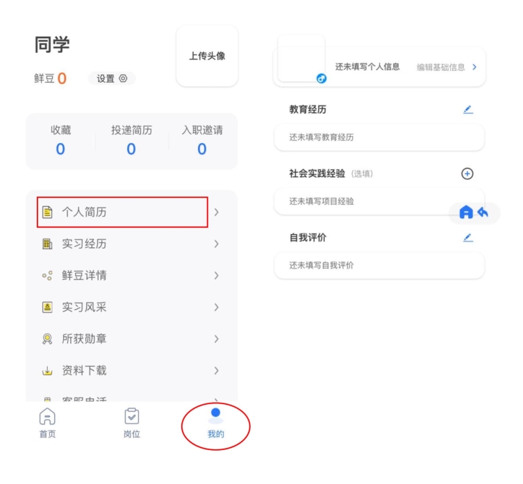第六步:点击 “岗位”,选择岗位,投递个人简历
