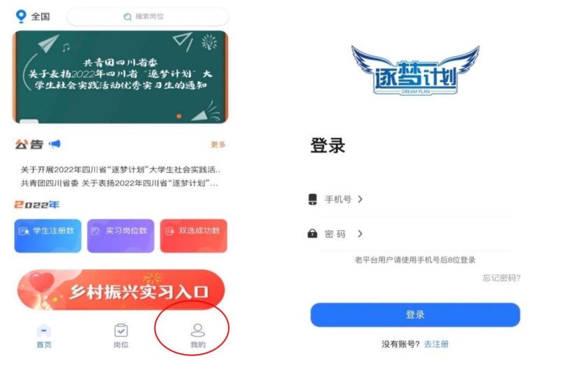 第三步:点击 “找岗位”,进入“逐梦计划”