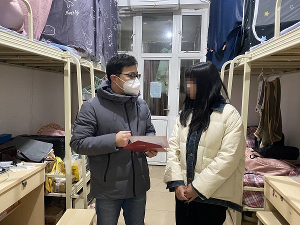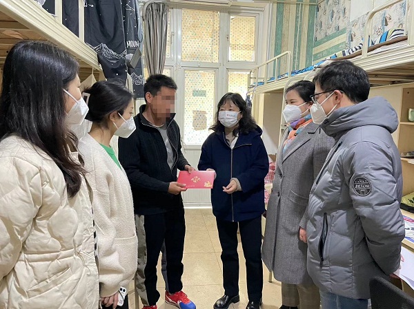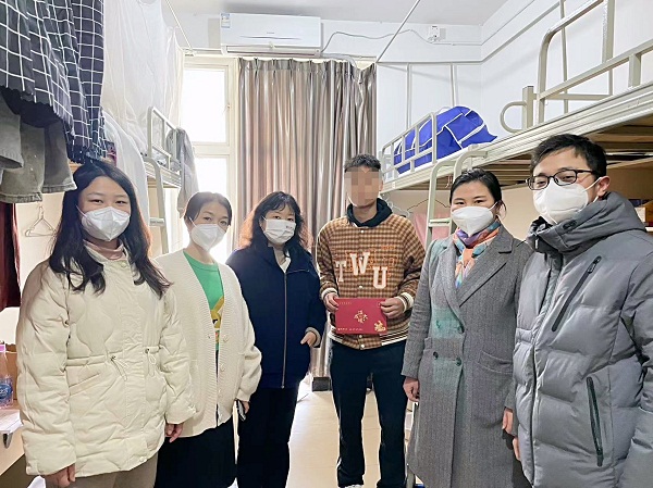 党委书记杨春霞、副书记周红带领班主任和辅导员慰问假期留校家庭经济困难学生。本次走访慰问对象主要为脱贫不稳定家庭学生、边缘易致贫家庭学生、最低生活保障家庭学生等特殊困难学生群体。