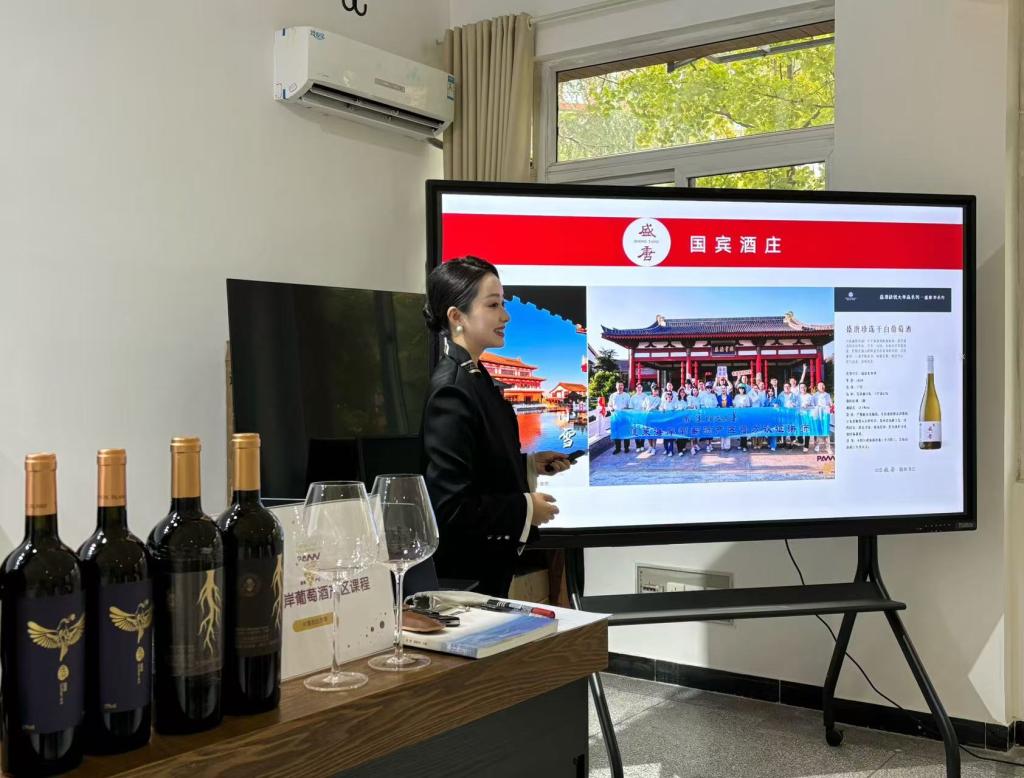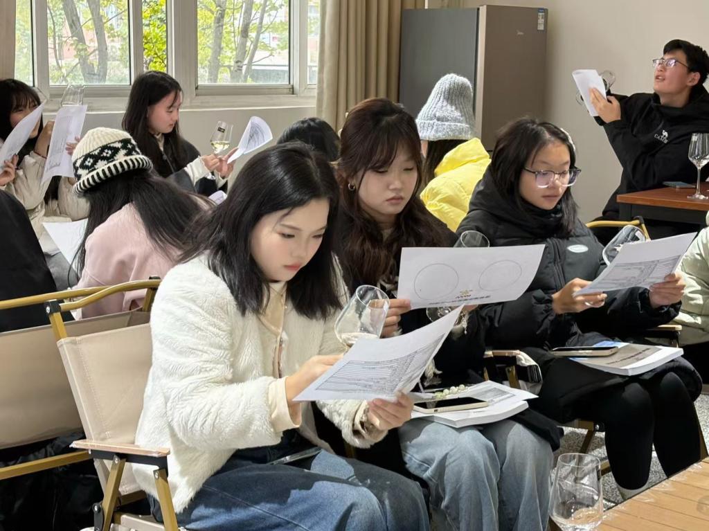 联合举办的“大咖面对面”活动顺利结束。本次活动特邀全国技术能手、省部级五一劳动奖章获得者、蓬莱海岸葡萄酒产区课程认证讲师任诗童,开展了一场别开生面的葡萄酒品鉴活动。本次活动吸引了众多师生参加,现场座无虚席,氛围热烈。