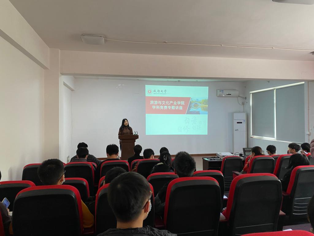 实际情况,并结合自身带队参与挑战杯的实战经验,向同学们阐述了参赛过程中的注意事项和要求。同时还介绍了我院历年来常规参与的赛事以及获奖情况,以“远华杯”全国大学生会展创意大赛为例,向大家介绍了参加该赛的规划框架、策略框架等,强调了在竞赛过程中合理分配时间的重要性。最后提出,参与竞赛获得的不仅仅是荣誉,更是自身能力的提升,学科竞赛是含金量高的考研加分项,大家应该踊跃参加,希望同学们突破原有认识框架,多进行现象与学科内在联系的思考。