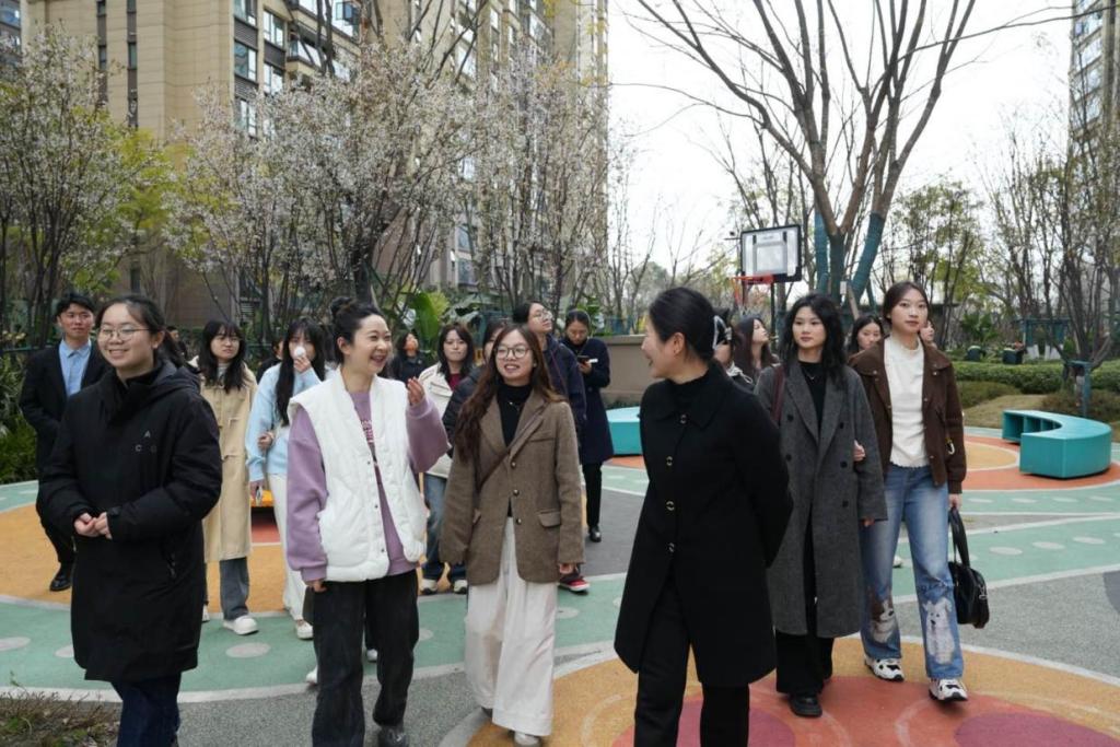 新希望物业服务集团有限公司组织发展与员工体验部总经理罗德建在宣讲会上讲解物业管理行业趋势及企业人才战略,重点介绍“新晨生成长计划”,从轮岗机制、职业发展路径、晋升体系到职工福利待遇和人才标准,为同学们勾勒出清晰的职业发展蓝图。接着,同学们在工作人员的带领下参观了中鼎国际项目写字楼智慧楼宇管理系统、团餐项目和锦麟府高端住宅项目区,了解高端商务物业的精细化运营模式,深入后勤服务链,探索物业领域“舌尖上的创新”,体验物业服务核心岗位工作场景。