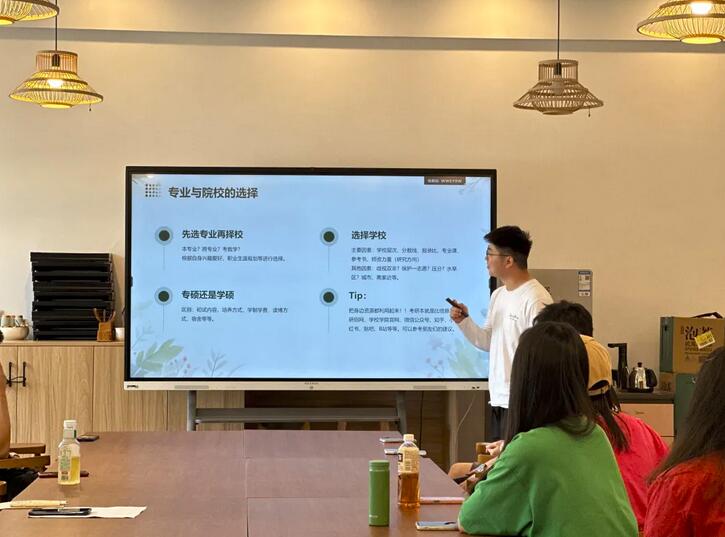 为帮助同学们深入了解考研相关事宜,明确学习方向,提高备考效率,汲取备考经验,职等你来辅导员工作室于5月9日在茶文化体验室顺利举办考研经验分享活动。本次分享会邀请了胡南、金哲轩、刘思航、黄辉平、黎欣五位优秀学长学姐为同学们做考研经验分享。