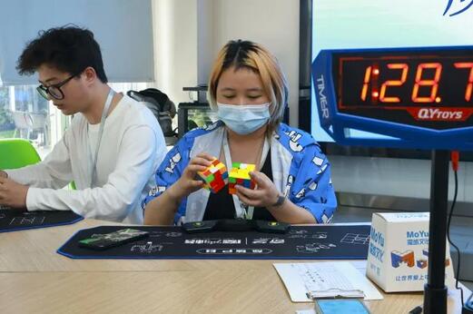 比赛当天,现场气氛热烈,选手们提前到场,做好了充分准备。在比赛中,选手们全神贯注、各展所长,充分展示了热爱的魅力和青春的活力与风采。赛场上的每一帧每一秒,都让人印象深刻,魔方的每一次转动都充满了策略和决断,也展示选手们对细节的关注、对速度的追求以及对胜利的渴望。