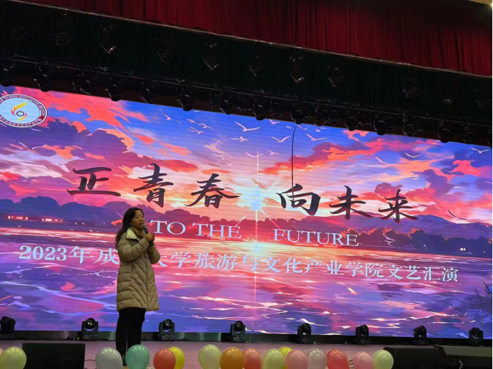 首先,杨春霞书记简洁而深情地发表了致辞。她表示,这场文艺汇演不仅是一场文化的盛宴,更是一个迎接新学年的盛会,它充满了我们对未来的期待和希望。随后,她激励同学们在大学这个宽广的舞台上,勇敢地展现自己的才华,同时也要不断地探索、成长,成就更出色的自己。