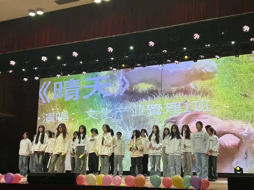 杨书记简短有力的话语让同学们不禁满怀期待,接下来晚会在刘振中老师悠扬的歌声中拉开序幕。一首想见你,唱出了刘老师与2023级同学们相遇的满腔热忱;悠扬的歌声婉转,似身临湖畔,赏云涌月明,李诗雨带来的《贝加尔湖畔》是灵魂的呼唤;指尖跃动,音符狂舞,音乐与乐器社团带来的《电动少女》与《控制》是震撼人心的喝彩;人生这条路很长,未来如星辰大海般璀璨,不必踟躇于过去的半亩方塘,23级旅管2班带来的《平凡之路》填补了那些遗憾;青春是一场华丽的邂逅,我们的故事里盘旋着低吟浅唱,魏杨玻带来的《我在人民广场吃炸鸡》浅唱了一场邂逅;我们始终怀揣着一种诚恳向彼此靠近,马文迪带来的《乐语》与《靠近右心房》提醒我们保持一颗炙热的初心;散文诗一样的浪漫,23文产1班带来的《晴天》弥留心间久久不散……师生的深情演唱让观众们沉醉其中,久久不能忘怀。
