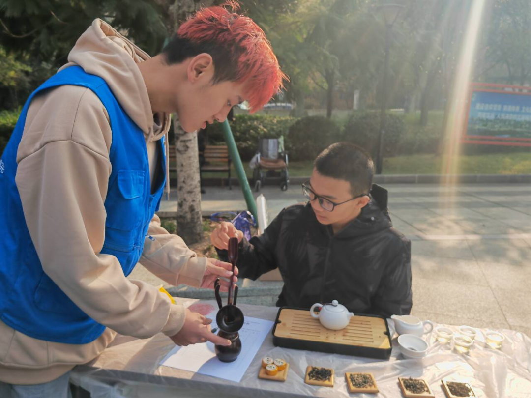 中国人以茶待客、以茶育人、以茶养身、以茶作礼。志愿者们从茶的历史、茶的分类、茶与养生等几个方面用心诠释了识茶、煮茶、泡茶、倒茶、品茶的流程。随后,志愿者现场示范每一件茶艺器皿工具的使用方法,“一看二闻三品,一口为润、二口为饮、三口为品……”大小朋友们在志愿者的带领下,利用桌面上的茶具一一效仿,现场练习茶艺技艺和礼仪。通过体验式的学习活动,将茶道精神内化于心、外化于行,在弘扬中华传统茶文化的同时,又帮助志愿者们开拓视野、陶冶情操,为志愿者的服务技能增能赋能。