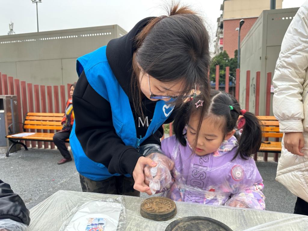 志愿者们首先来到了石灵社区,向小朋友们讲解传统拓印的历史起源、意义以及拓印的一些基本技巧。随后带领大家体验了传统的石板拓印,小朋友们仔细聆听着志愿者们的讲解,认真观察志愿者的操作步骤。最后,小朋友们都圆满完成了属于自己的拓印与造纸作品。这次活动,不仅让孩子们体会到了亲手造纸与拓印的乐趣,同时更领略到传统文化的魅力,让传统文化融入现代生活,以寓教于乐的形式,让小朋友们更多地了解传统文化。