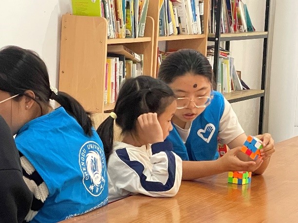 在轻松愉快的氛围下,几乎每位小朋友都能拼出小花,十字架,甚至还原一层魔方,如此的成就感激起了小朋友们对魔方的喜爱,传播了魔方文化,营造了良好的社区氛围,充分实现了个人价值与社会价值。未来我们也将增加飞行棋、五子棋等益智好玩的游戏,再次丰富活动内容,参与更广泛的社区服务。