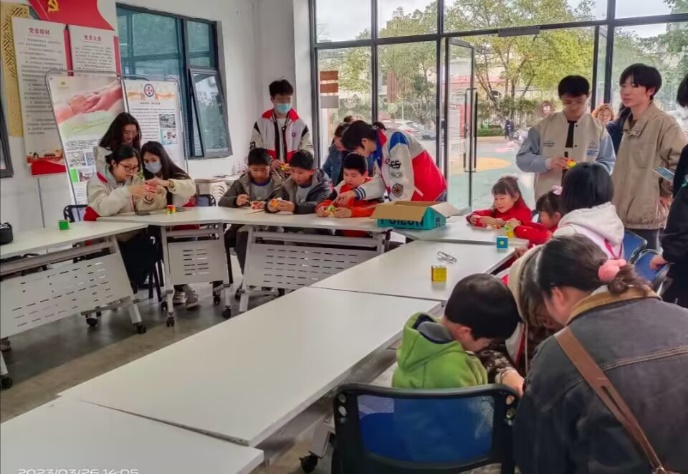 此次相遇虽短暂,此中真情终难消,我们结识了一个个对魔方充满热情的天真的小朋友,甚至一些小朋友的家长也加入了活动当中,看着他们将一个一个打乱的魔方复原,我们的自豪感油然而生,于我们而言,不得不说是一次美好的体验。