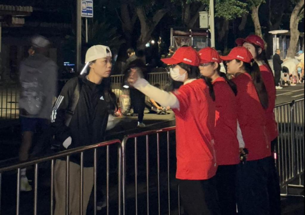 凌晨3:30,我院的志愿者们到达岗位,安装隔板、摆放标识物、组装头灯。随着运动员入场,志愿者们开始为运动员提供物资发放、指引道路等服务。