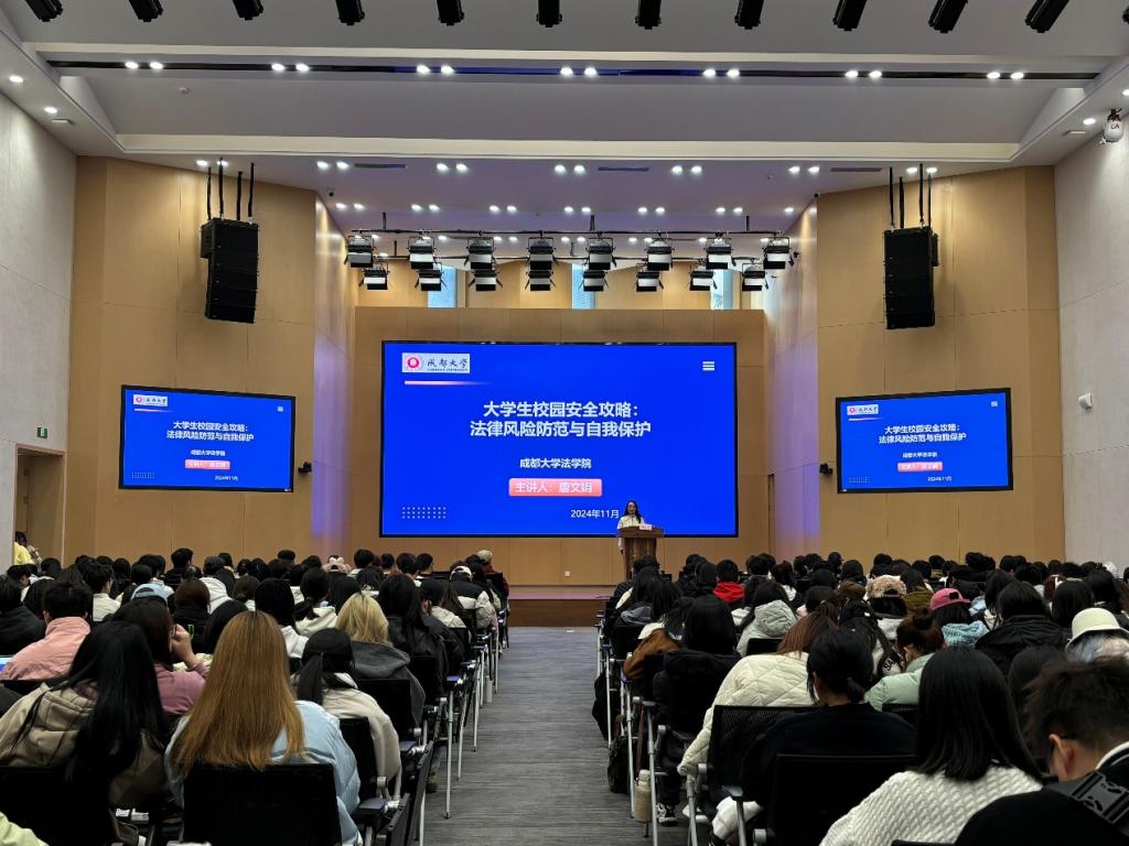 讲座伊始,唐文娟教授首先强调了校园安全的重要性。她指出,大学生在校园生活中应了解自己的权利和义务并践行。同时,她还提醒同学们,校园内外的人员复杂,各种案件时有发生,因此提高安全防范意识至关重要。