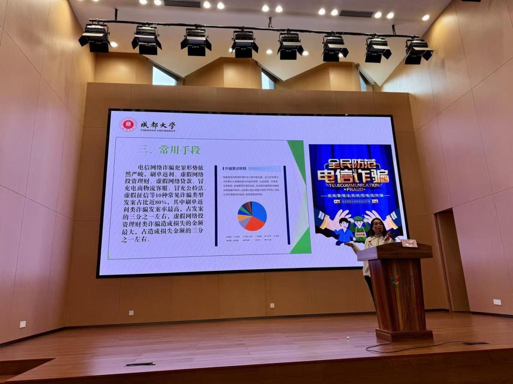 由于网络诈骗案件频发,唐教授特别提醒同学们应提高警惕,不能轻信陌生人的信息,更不能随意透露个人信息。唐教授强调,每年3、6、9月是诈骗高发期,她建议同学们使用安全的支付工具进行网上交易,应仔细甄别克隆网站和钓鱼网站,避免上当受骗。讲座最后,她鼓励同学们要加强自我保护意识,提高法律意识,遇到问题时及时向学校保卫处或公安机关报警。