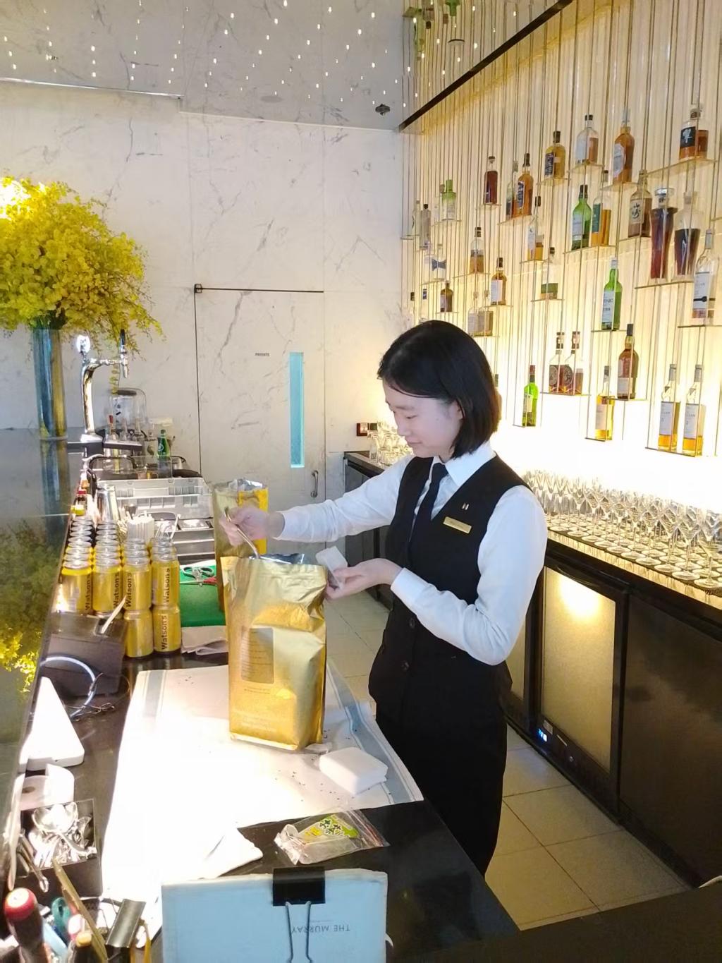 在香港酒店实习,王馨颖有幸接触到来自世界各地的客人和同事,深刻体会到文化的差异和多样性。并且在与外国客人和同事的交流中,她不断提高自己的英语水平,为客人提供更好的服务。