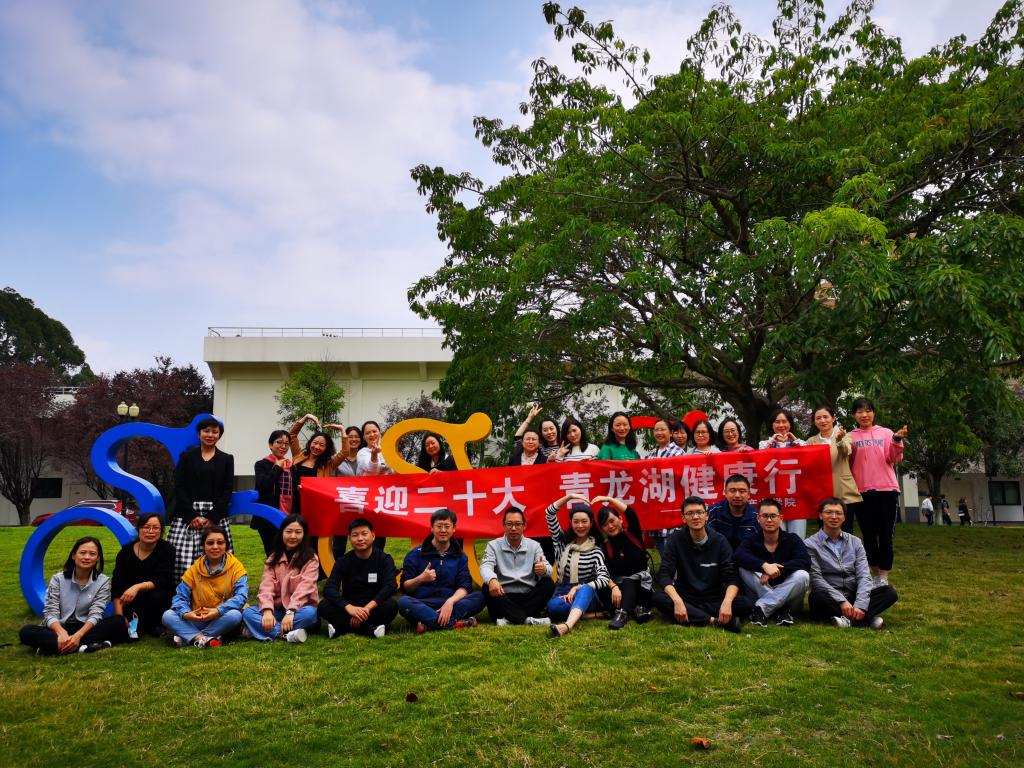 教职工开展“喜迎二十大·青龙湖健康行”活动,走进绿色自然,强健身体素质。