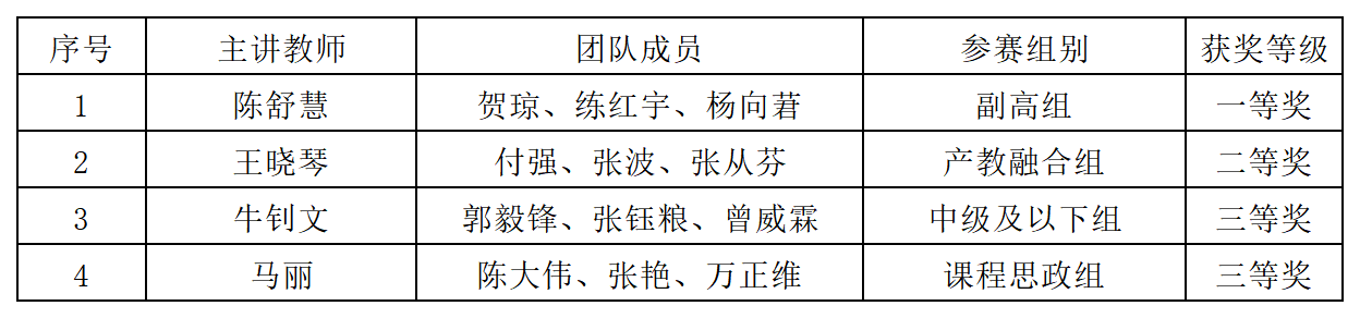 牛钊文老师团队获得三等奖。同时,陈舒慧老师团队将代表四川省参加全国总决赛,这也是我校教师首次获得省赛一等奖且首次入选此项赛事国家级决赛。