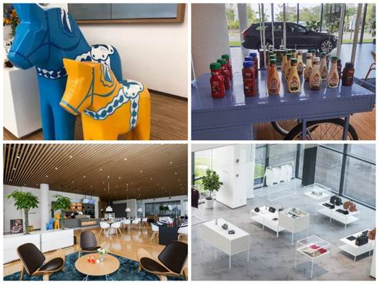 在结束汽车工厂智能制造体验之后,同学们又回到品牌体验中心的一楼,开始北欧文化体验。任何一个品牌的发展都离不开哺育它的土地,品牌文化中总会带着深深的地域文化烙印。沃尔沃来自瑞典,因此在将瑞典当地比较有代表性的特色美食、传统习俗、设计风格以及文化创意进行了展示。同学们在展厅里一边与工作人员交流,一边饶有兴致地观察和拍照,进一步拓展了对沃尔沃品牌文化的认识。