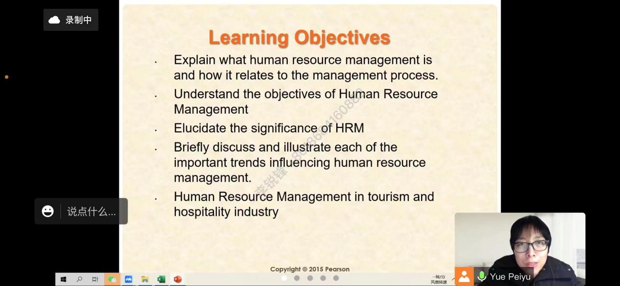30名本领域的行业和高校行政系列的硕士研究生。在为期八周的教学中,岳博士将带领教学团队围绕“Human Resource Management”、“Human Resource Planning”、“Training and Development”、“Performance Appraisal”、“Employee Welfare & Job Satisfaction”等模块,结合旅游与接待业各个细分领域的发展特征和前沿趋势,展开内容讲解、主题研讨、实地调研、研究汇报等教学活动。