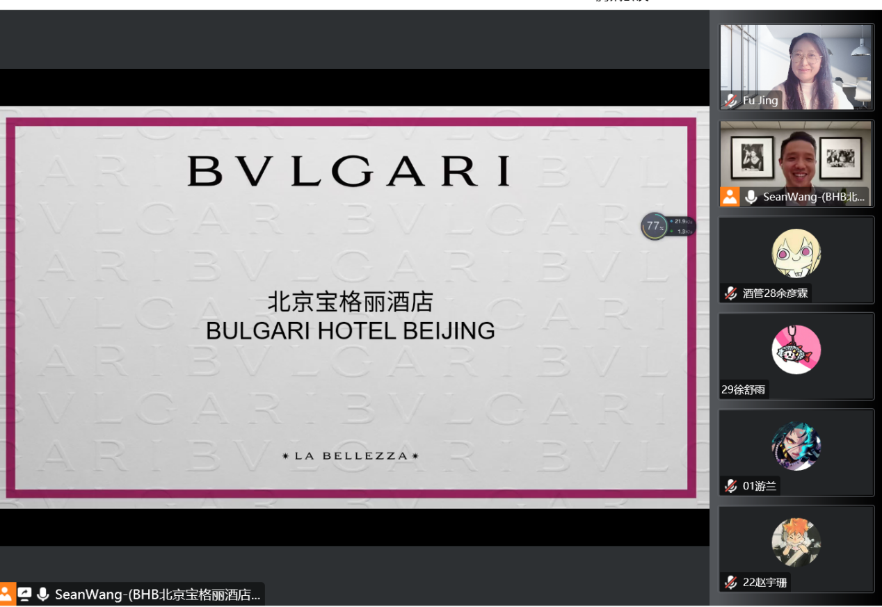 12月19日,北京宝格丽酒店人力资源总监Sean Wang先生为我院师生带来“BuildingCapacities towards Successful Hoteliers”的在线研讨。