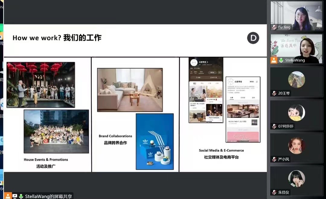 9月28日,成都博舍酒店市场与传讯部总监Stella Wang女士,为师生们带来“Your Research Values: Practices from Marketing & Communication”的在线研讨。