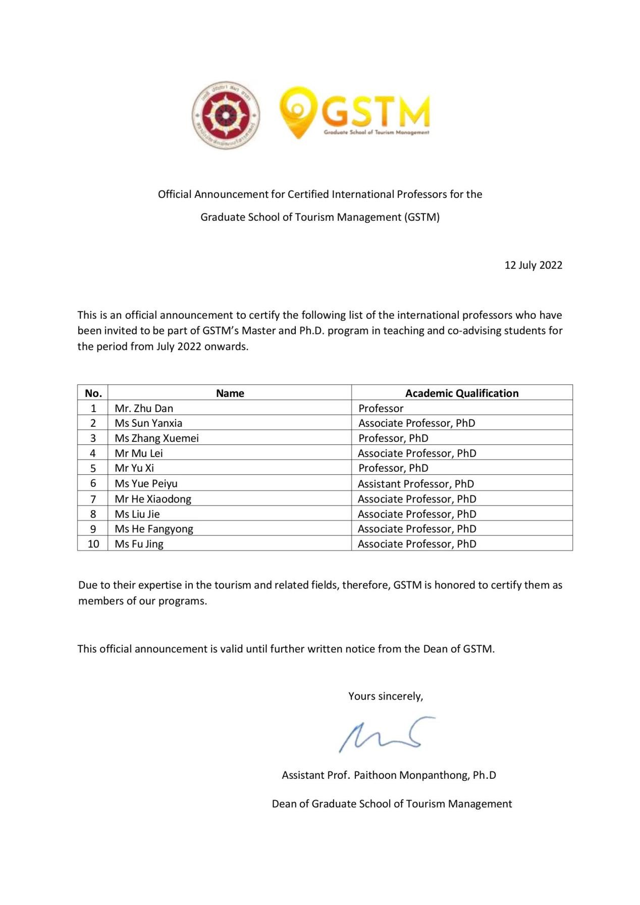 ,是亚洲高校中是为数不多的,硕、博项目均获得世界旅游组织TedQual认证的优质学府。
