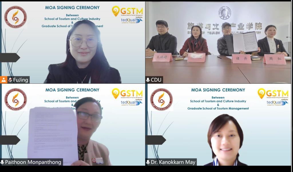 自去年9月以来,我院与这两所优质院校开展了多次云端教学和研究活动,并先后于去年11月和今年1月先后签订了院际合作协议,旨在促进、加强与包括泰国在内的“一带一路”沿线国家和地区文旅领域的交流与合作。
