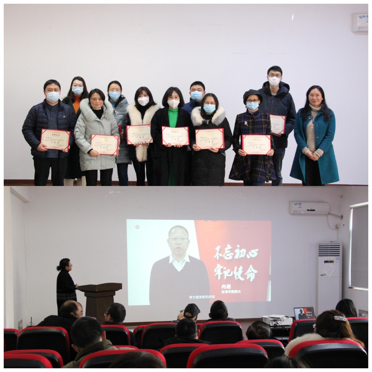 2021年优秀个人颁发了奖状。全院教职工观看了学校宣传部制作的2021年度回顾视频。