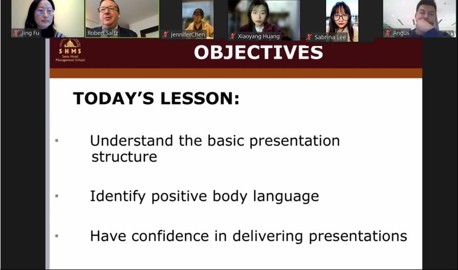 (Swiss Hotel Management School,以下简称SHMS)围绕着“酒店业的演讲结构与表达技巧”开展了云课堂交流活动,来自两校50多名酒店管理及相关专业的师生获邀参加。
