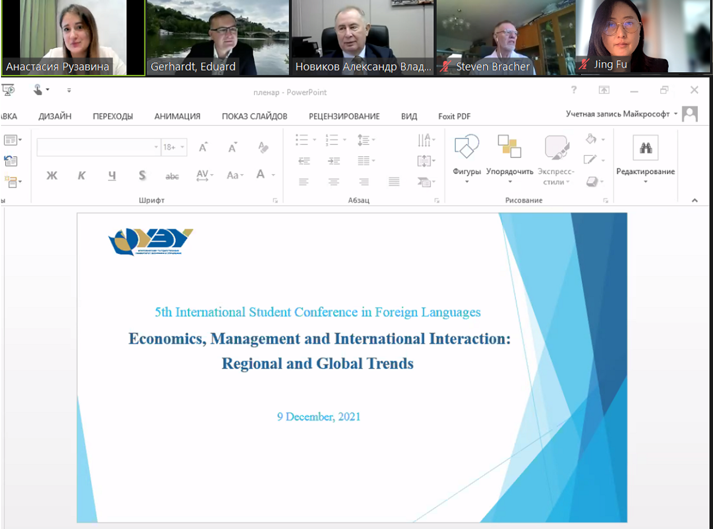 2021年12月9日,我院学生应邀参加了由俄罗斯联邦科学和高等教育部与新西伯利亚国立经济管理大学共同举办的“第五届国际学生大会”。本届大会的主题为“经济、管理和国际互动:区域和全球趋势”,采用英语、德语、法语、中文、韩语、日语、俄语多语语言,通过线上线下相结合的方式开展。会议吸引了130多名来自12个国家、10所大学的学生注册报名,在8个平行论坛中完成了70多个主题分享与汇报。