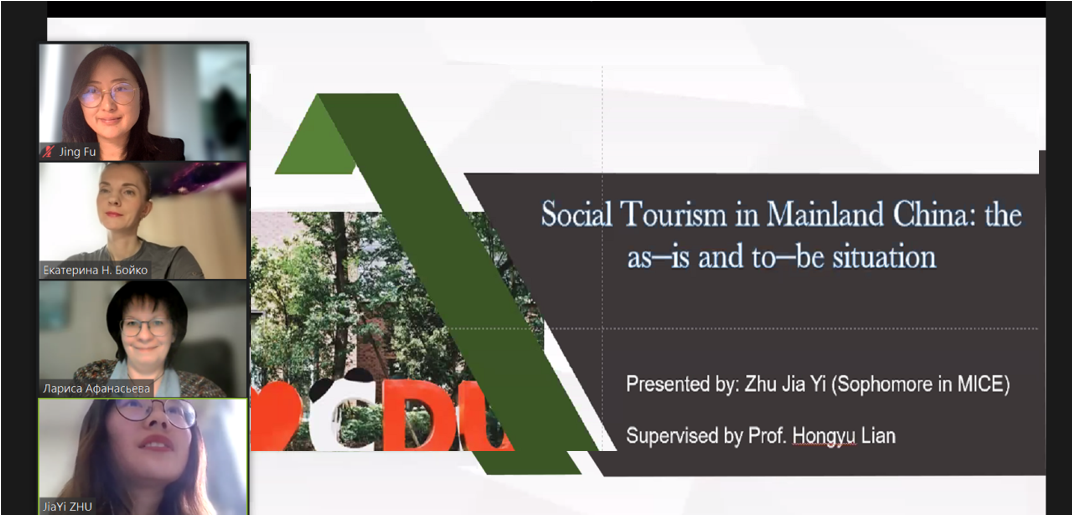 我院七名本科学生用英语和中文分别在平行论坛中做了“Social Tourism in Mainland China: the as-is and to-be situation”、“Wonderland —LARP Style Hotel”、“三星堆特色时光小镇营造研究”和“掌上酒店:智慧云游玩酒店”的主题汇报。