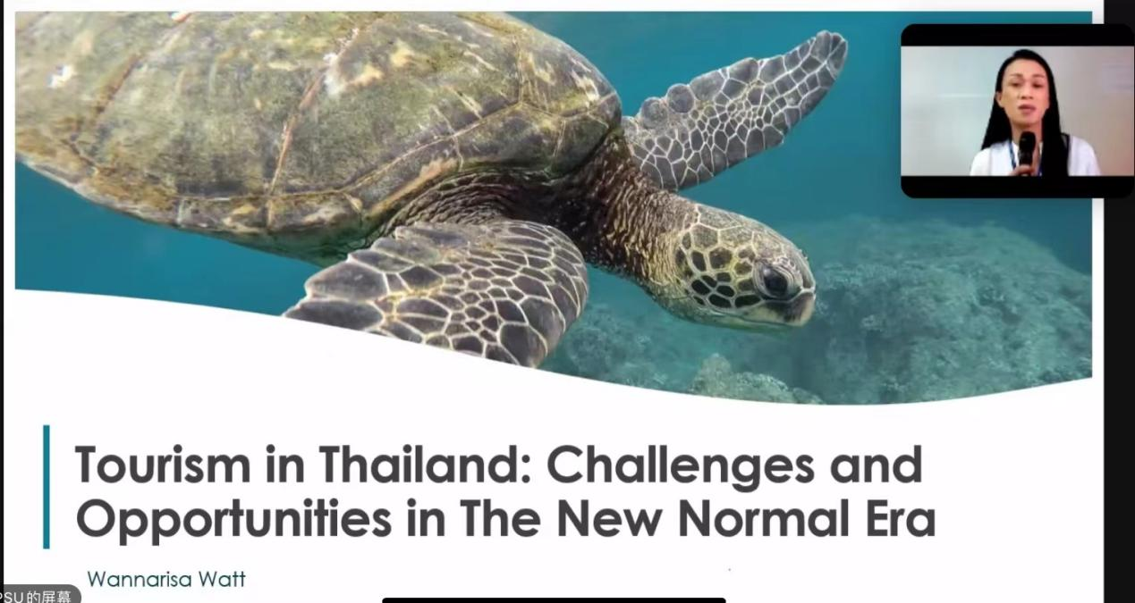 共同举办了第一次“云课堂”交流活动(Virtual Exchange,以下简称云课堂)以来,双方师生已围绕着新常态时期国际酒店及旅游业的相关主题连续开展了四次云端交流活动。12月7日下午,泰方Wannarisa Watt老师为我院师生带来了“新常态下泰国旅游业的挑战与机遇”主题分享,吸引了双方旅游管理系、酒店管理系及相关专业90多名师生参加。