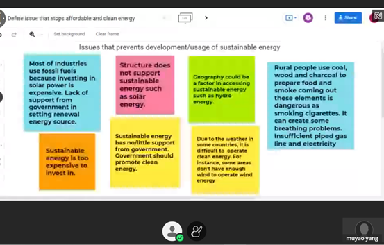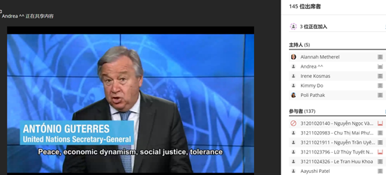 同学们纷纷表示,与来自不同国家的同龄人一起关注、讨论全球性的问题很有意义。既拓宽了眼界、增长了知识,也学习了从不同角度看问题。同时,也了解了不同的网络国际会议的组会模式,受益匪浅。