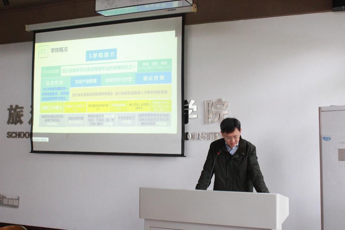 概况、专业发展和人才建设三个方面系统地介绍了我院旅游管理专业与学科建设的情况。旅游系主任陈颖从地方服务、人才培养等方面介绍了我院特色与优势。