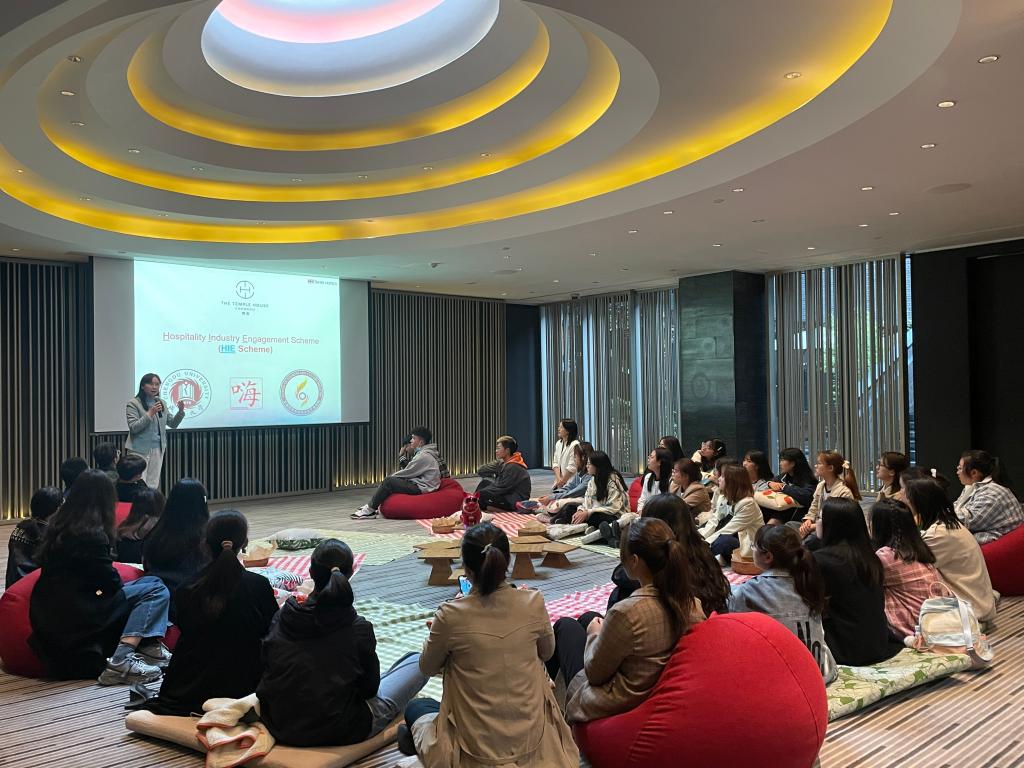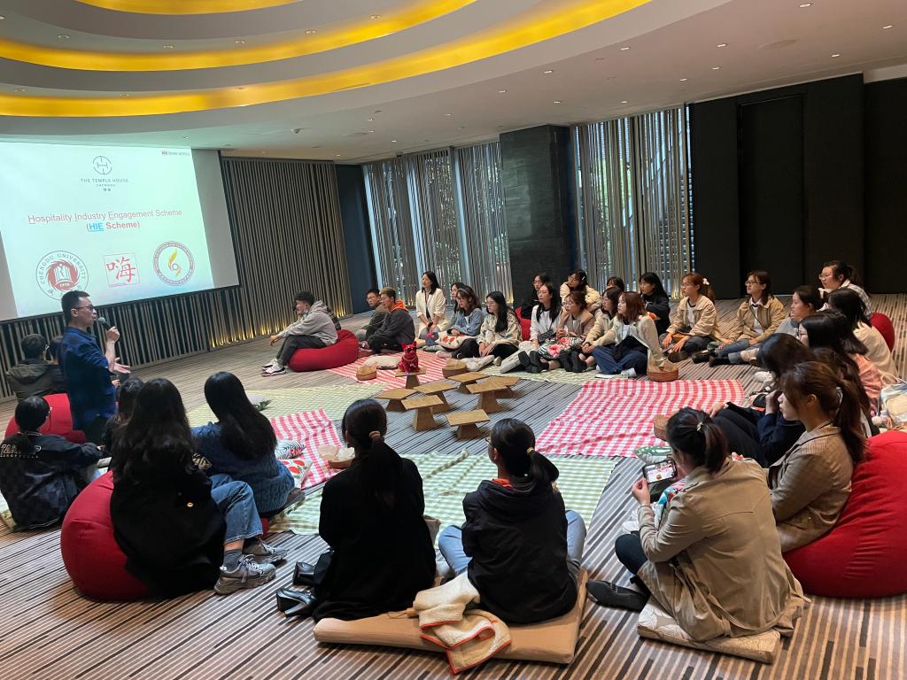 副院长练红宇教授、旅游管理系付静博士的带领下,访问了位于成都市远洋太古里的成都博舍酒店(The Temple House)。这是同学们入学以来第一次走进酒店业,标志着酒店管理专业的行业认知HIE计划(Hospitality Industry Engagement)正式拉开帷幕。