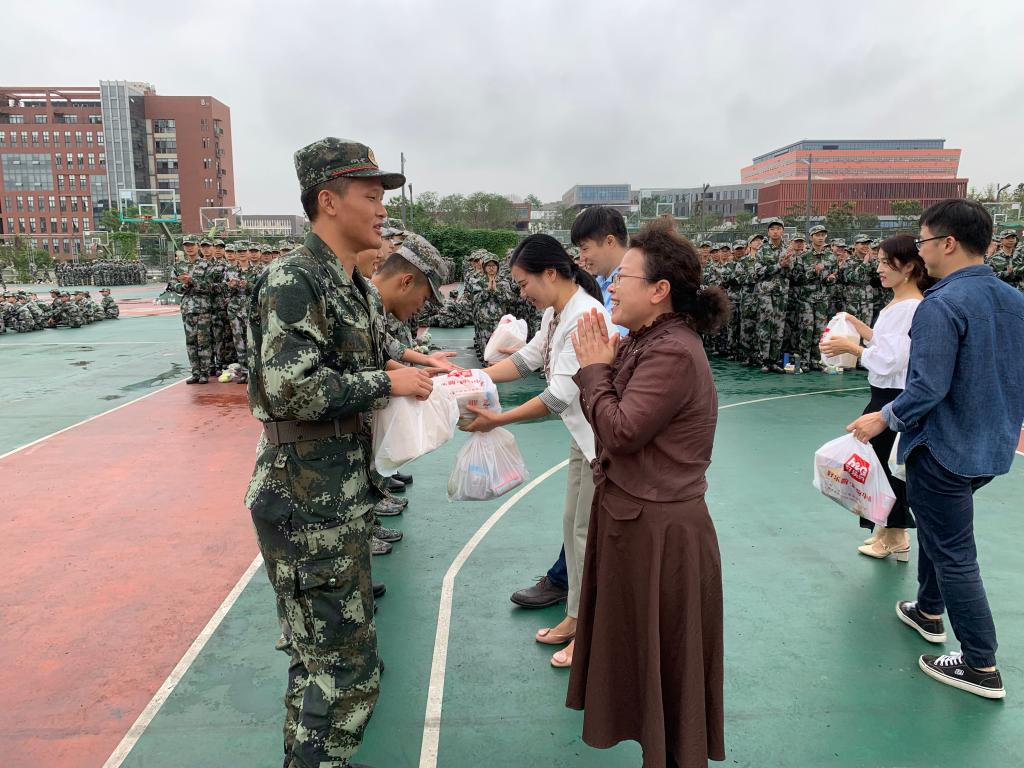 领导和老师的亲切关怀慰问,让新生们倍感温暖和鼓舞。军训虽然辛苦,但“宝剑锋从磨砺出,梅花香自苦寒来”,经过此次军训,希望同学们能够有更大的收获。作为新时代青年中的一员,相信你们终将通过这段时间的磨练而成为一名足以担当时代复兴大任的大学生。