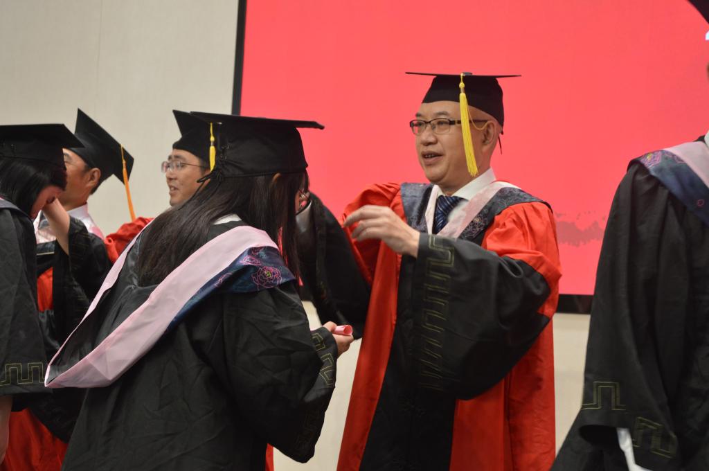 院长诸丹教授宣读学位评定委员会决议,为在座的每一位毕业生进行学士学位授位。一缕缕流苏轻轻拨开,连接的是学校与社会的不同轨迹。四年时光转瞬即逝;一张张证书自老师手中递交到毕业生手中,承载的是母校的殷殷期盼。望学子们不忘母校,回馈社会,报效祖国。