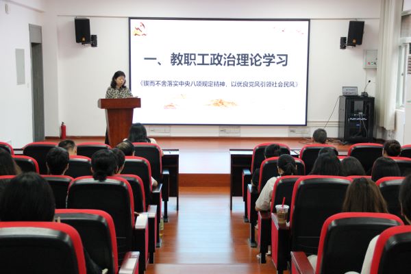 会议开展了政治理论学习,全院教职工学习了习近平总书记重要文章《锲而不舍落实中央八项规定精神,以优良党风引领社风民风》。要求全体教职工从党风问题关系执政党的生死存亡的高度认识、从党性原则问题的高度认识八项规定精神的重要意义,要求领导干部以上率下,落实全面从严要求。会议开展了中央八项规定精神警示教育。
