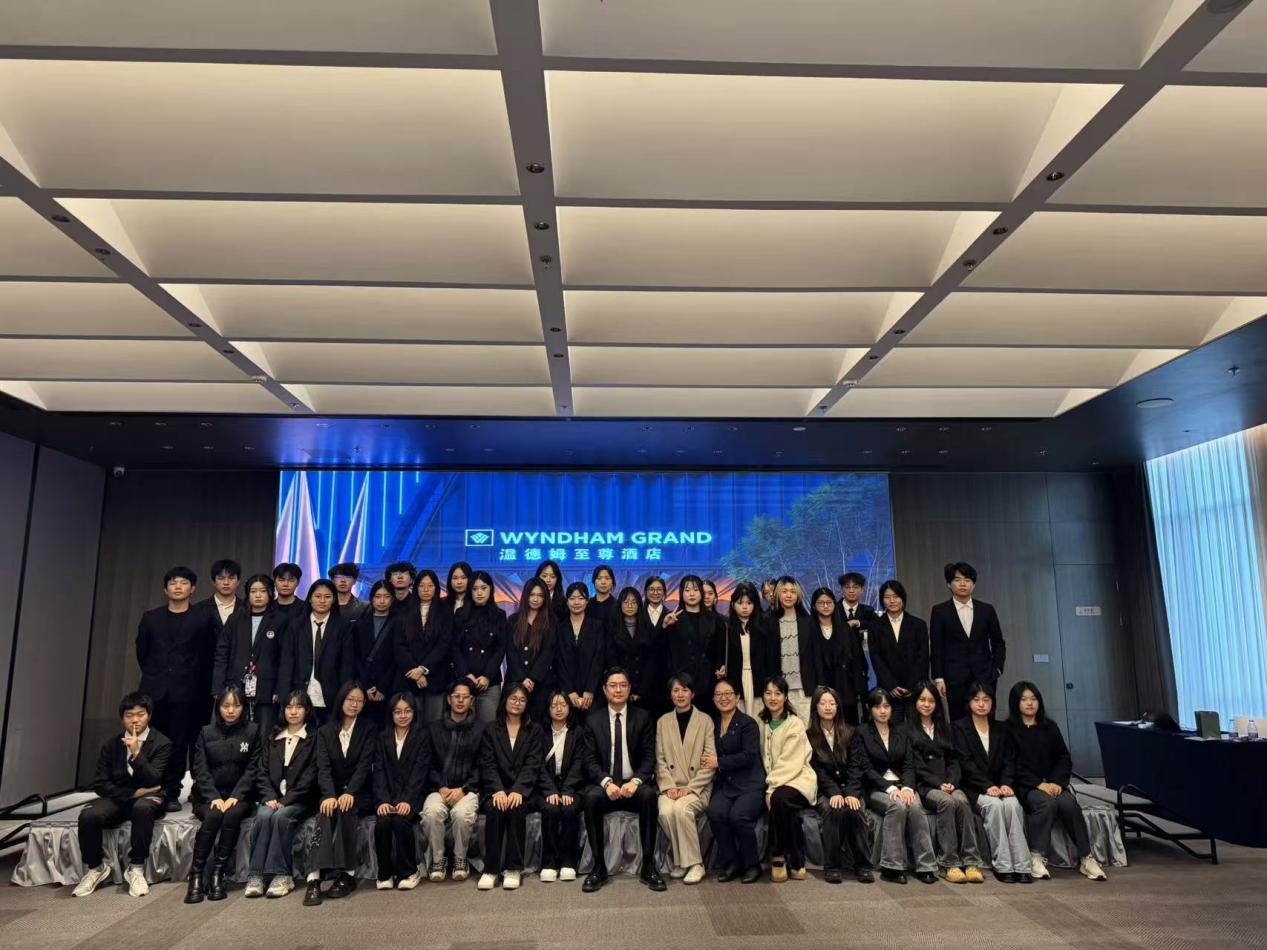 在温德姆至尊酒店的考察,是学生们从“潮流”、“文化”、“生态”等主题型酒店,回归到对现代奢华商务酒店本源的观察。总经理郑戈亮先生为学生们讲解了行业“巨头”是如何依靠稳健的运营体系、对科技与在地文化的融合,来定义当代高端商旅标准的。