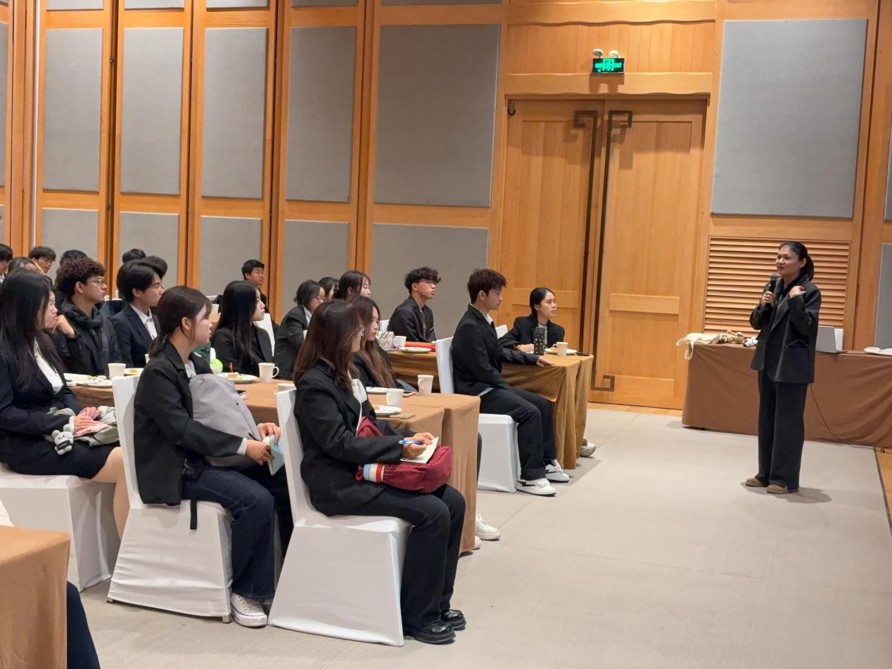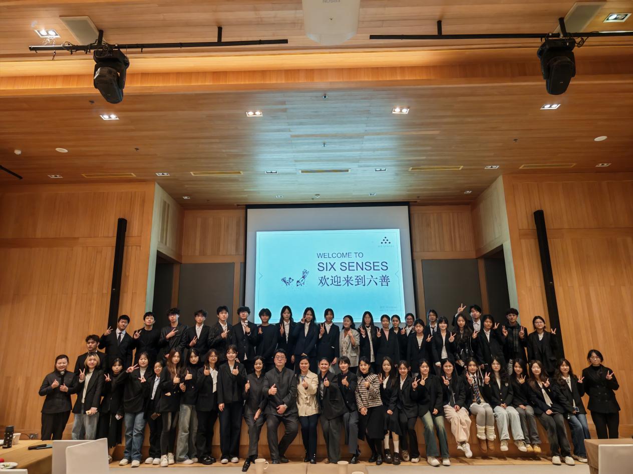 青城山脚下的六善酒店人力资源副总监Elin Li女士及团队向学生们展示了可持续发展理念在高端度假酒店中的实践。这所全球首家以山为主题的六善酒店,以绿色有机、森林式田园和声音疗愈等沉浸式体验,诠释了“素雅奢华”的新内涵。学生们在自然环境中,体验了度假酒店如何平衡奢华体验与生态保护。