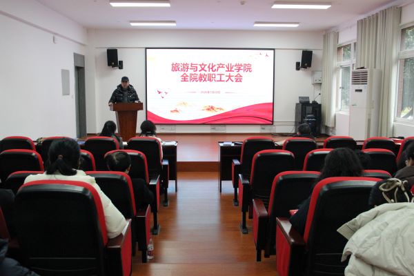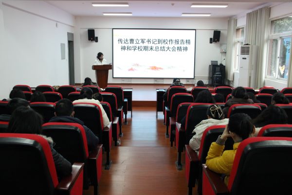 杨春霞传达学校2025年度总结大会的会议精神。大会总结了学校2025年工作,全校上下深入贯彻党的二十大和二十届历次全会精神,全面落实党中央决策部署和习近平总书记对四川工作系列重要指示精神,抓好全国全省全市教育大会精神落地实施,坚持稳中求进工作总基调,扎实开展深入贯彻中央八项规定精神学习教育,坚定不移落实第八次党代会任务要求。大会明确了2026年攻坚方向,定标“成都发展战略”,谋划“成大发展策略”,始终坚守立德树人初心,践行强校兴城使命,坚定落实学校第八次党代会确定的“四大战略”“八大工程”“六大行动”的行动路径。